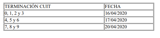 Por otra parte, se prorrogó el vencimiento para la presentación y el pago de la declaración jurada de aportes y contribuciones destinadas al SUSS por el período de marzo de 2020, de acuerdo al siguiente cronograma: